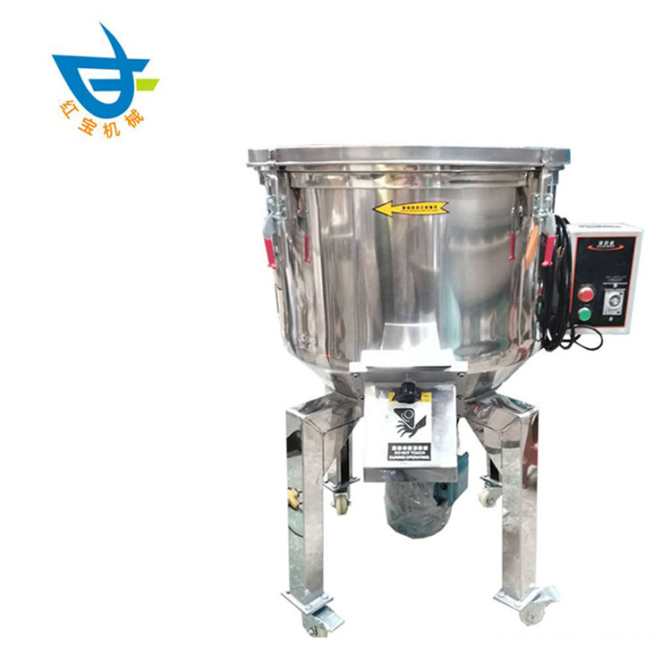 100KG立式塑料混色機配置:桶體為鏡面不銹鋼厚度為1.5MM,槳葉厚度為10MM.機械轉速為85轉每分鐘.電機為3KW擺線針輪減速機.電器為德國進口施耐德牌.拌料時間為8-15分鐘一桶料.