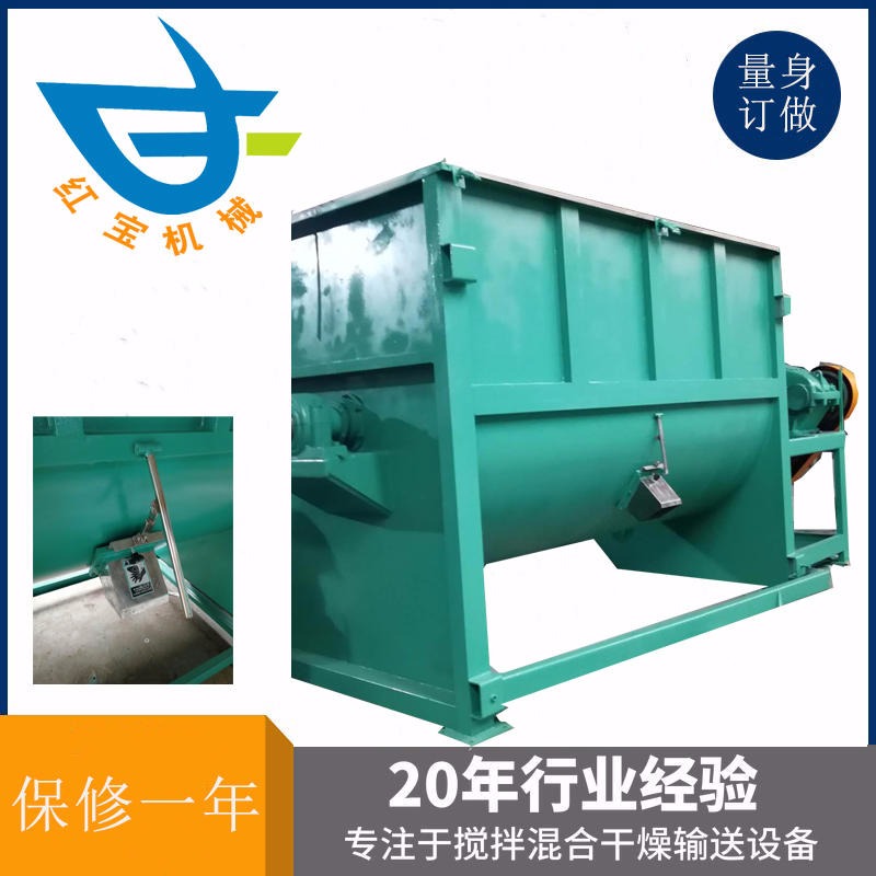 1000KG大型臥式混色機吸收了國內外粉體混合設備先進技術經驗,經紅寶產品研發部歷時三年改進而成,工藝精良,先進切割、焊接技術,堅固耐用,它與以往的立式攪拌機、臥式U型攪拌機不同,采用臥式圓筒結構,維修率大大降低,攪拌不留死角,均勻度大幅度提高,混合時間縮短至5-8分鐘,節能更高效,具有以下顯著優勢:
